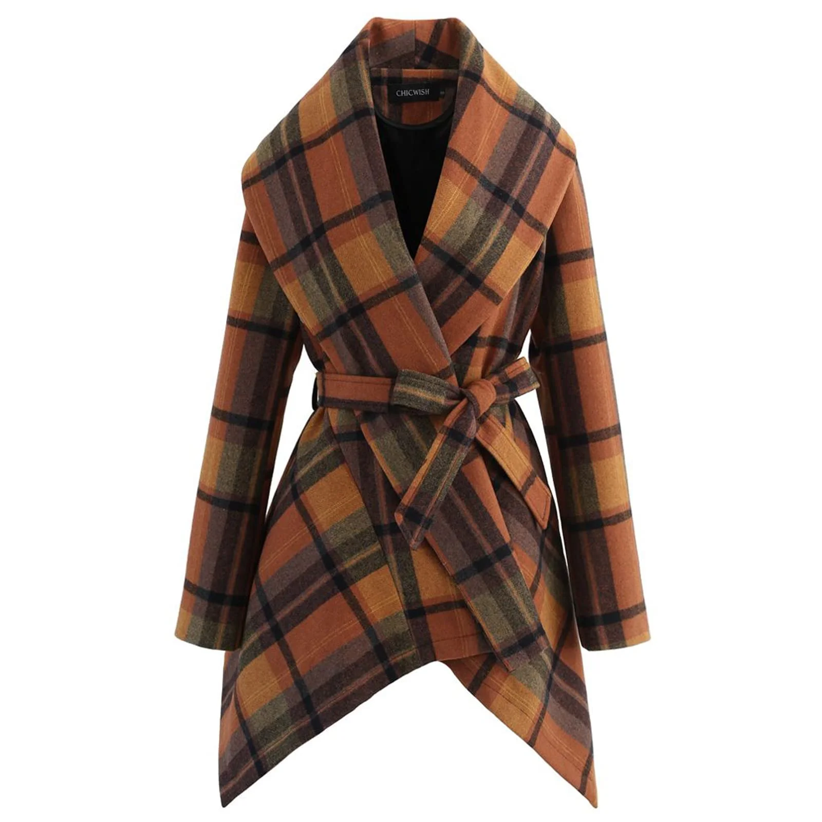 Women’s Coral Plaid Pattern Wool Blended Rabato Coat